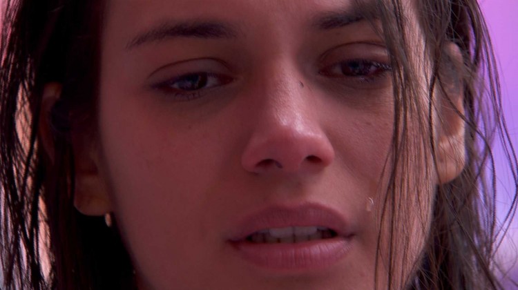 Em pé no Quarto Fada, a paraense canta "Círio Outra Vez", música do padre Fábio de Melo. Pouco antes, a bailarina segurava uma blusa enquanto chorava.
